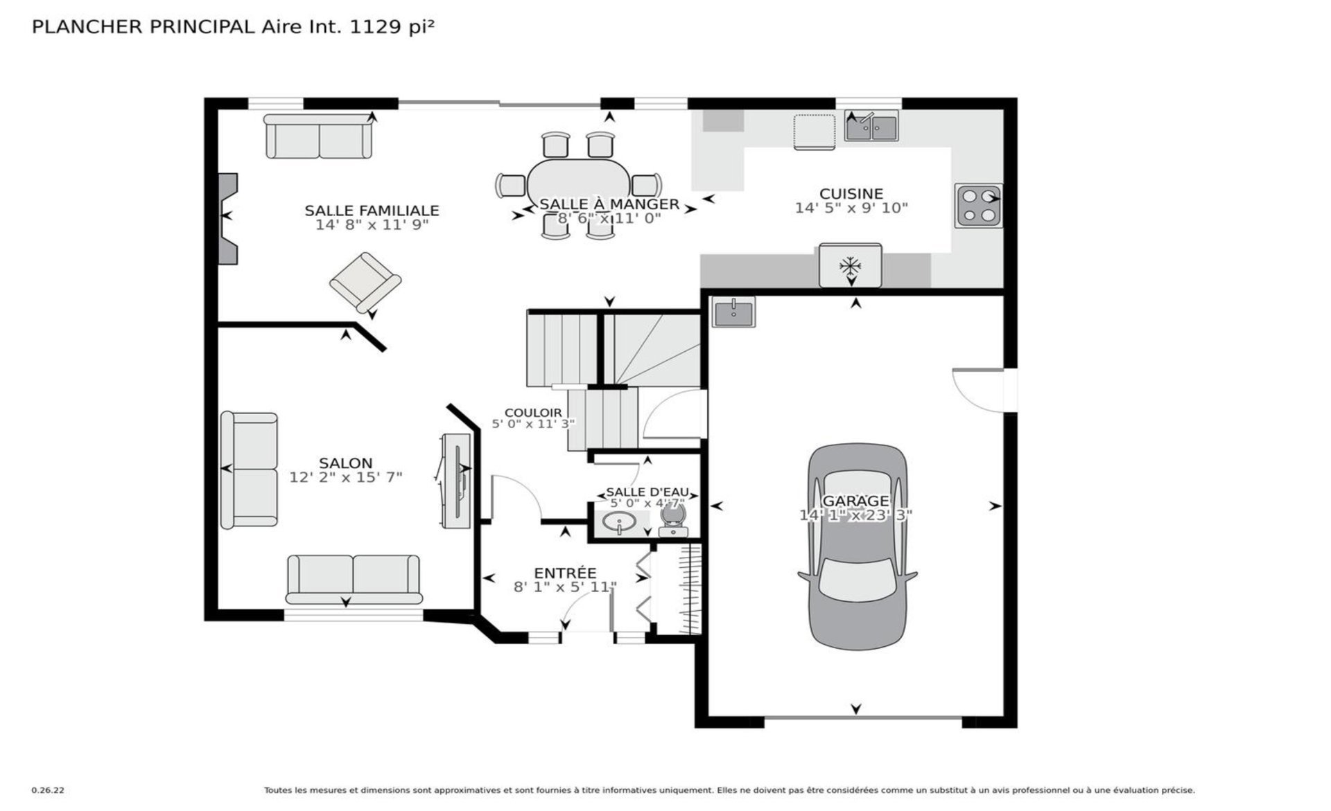 | Salon | 12.2 x 15.7 P | Rez-de-chaussée | Bois |