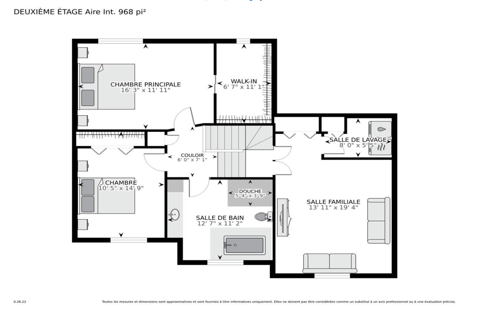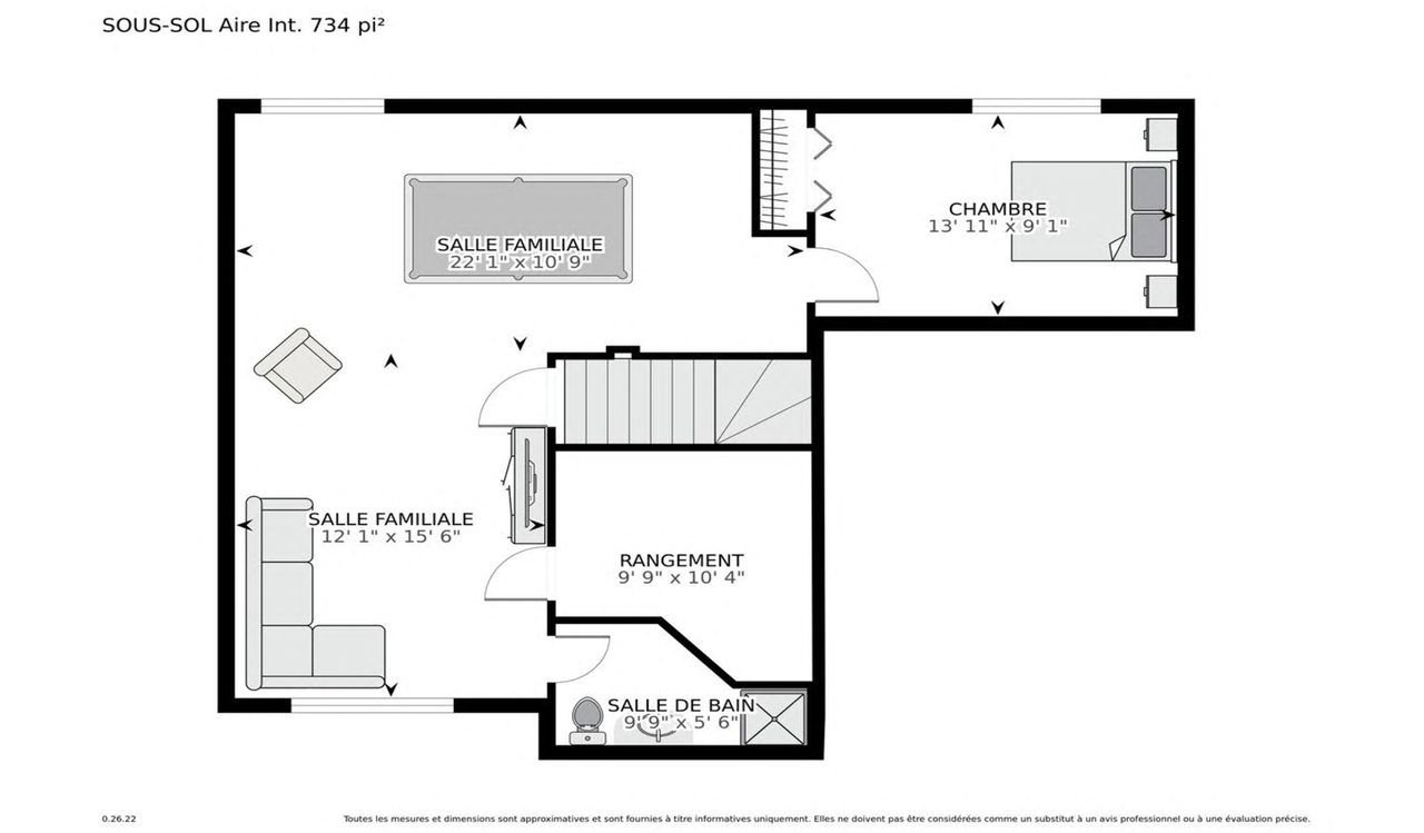 | Salle de jeux | 22.1 x 10.9 P | Sous-sol | Plancher flottant |